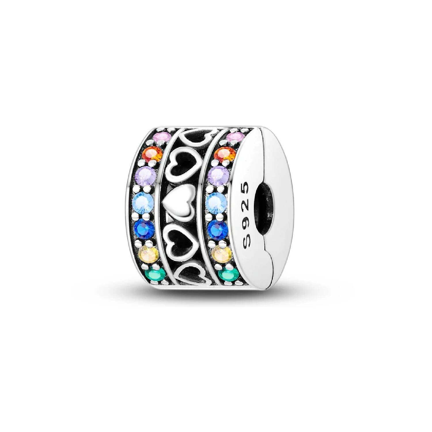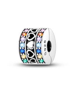 Charm Clip Corazones y Circones En Plata 925