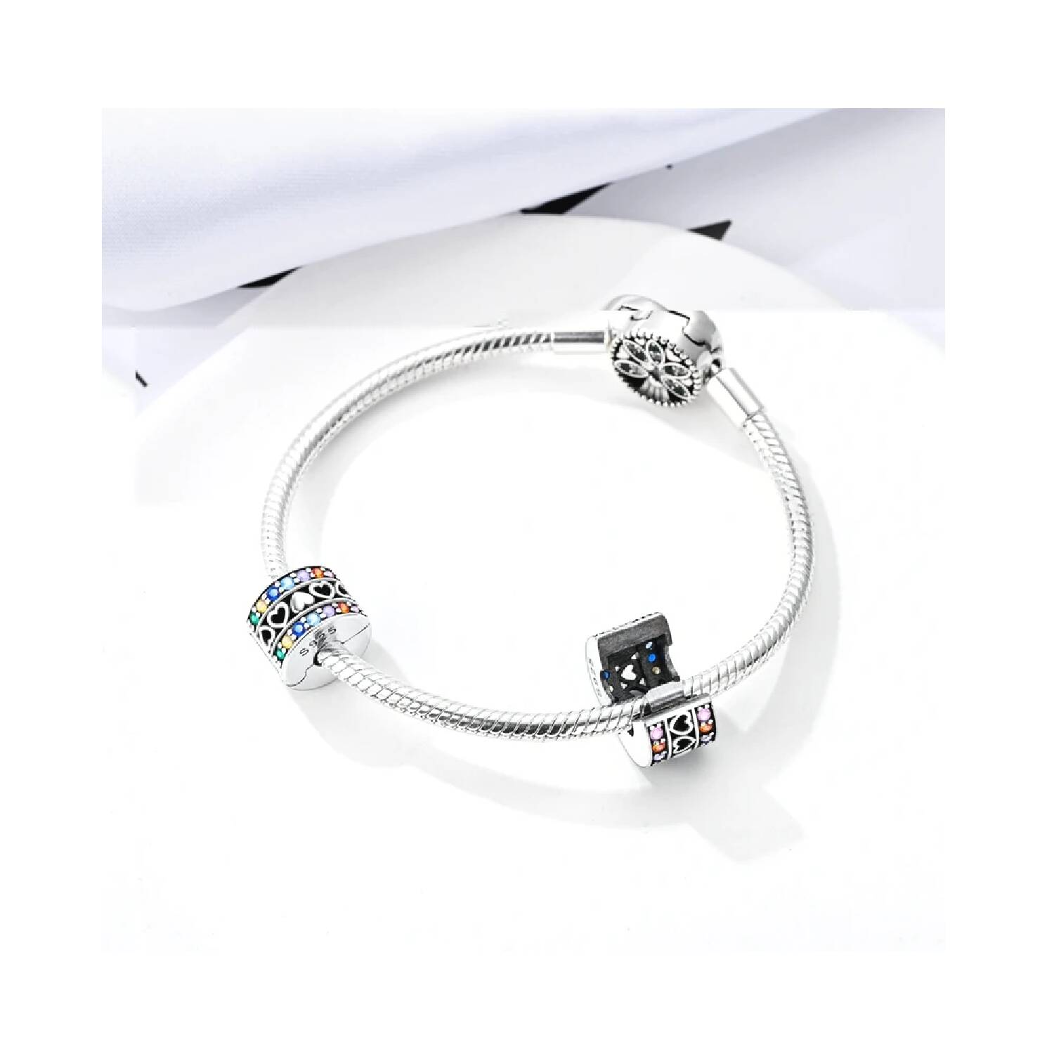 Charm Clip Corazones y Circones En Plata 925Charm Clip Corazones y Circones En Plata 925