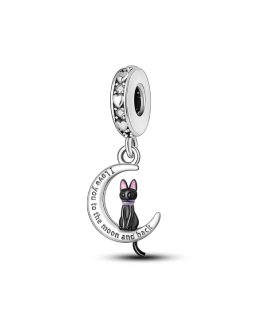 Charm Gato Negro y Media Luna Circones En Plata 925Charm Gato Negro y Media Luna Circones En Plata 925
