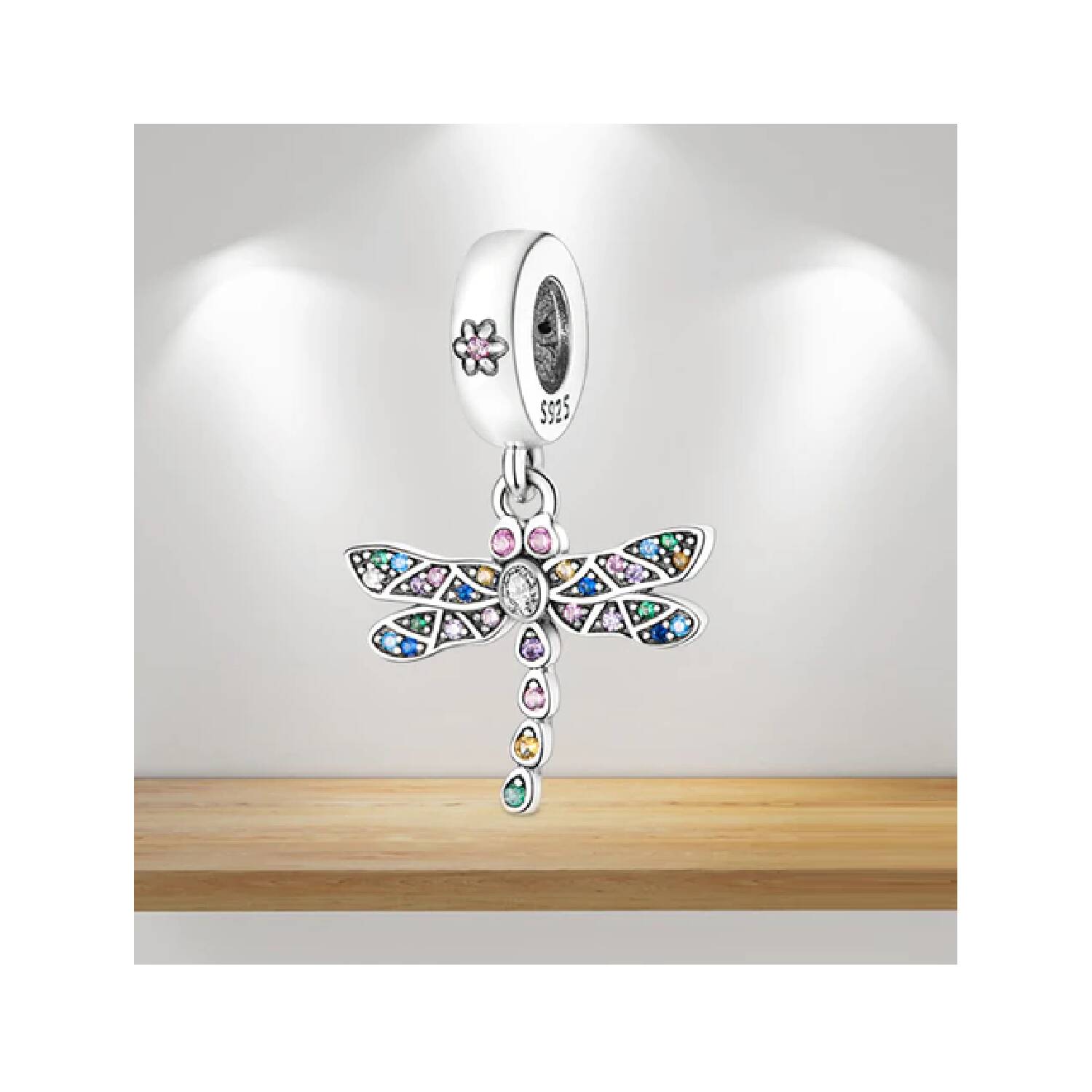 Charm Libélula y Circones Multicolor En Plata 925Charm Libélula y Circones Multicolor En Plata 925